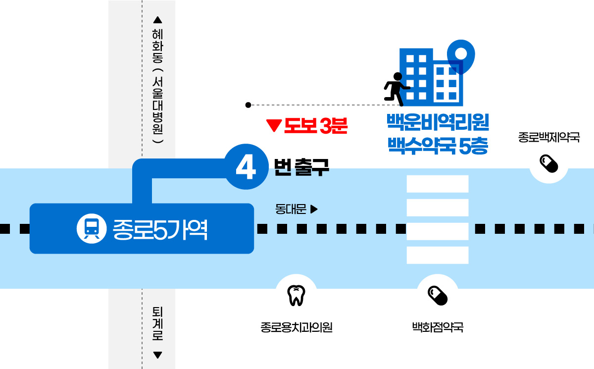 (종로5가 전철역 4번 출구 백수약국 5층)